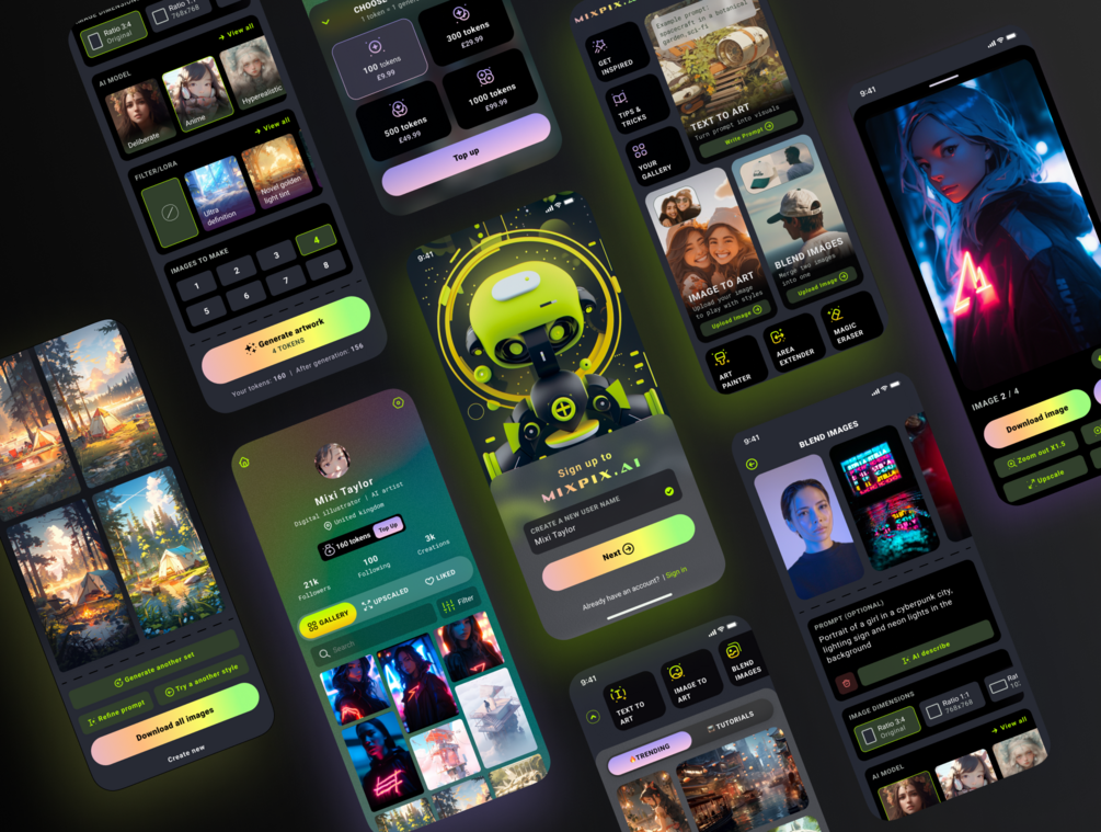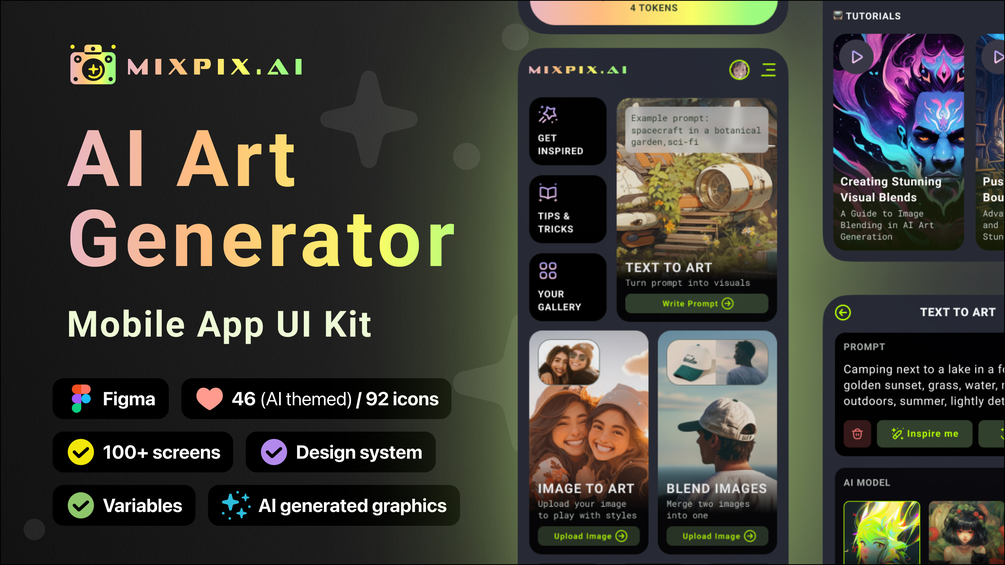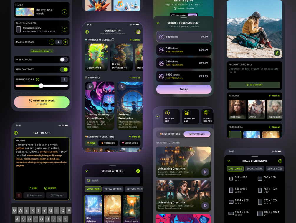 Ai Art Creator App UI Kit | 100+ Mobile App Screens | 11 app feature areas covered